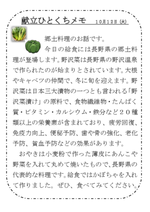 2021年10月27日 16時00分〔blog〕 今日の給食 【郷土料理】 山形県